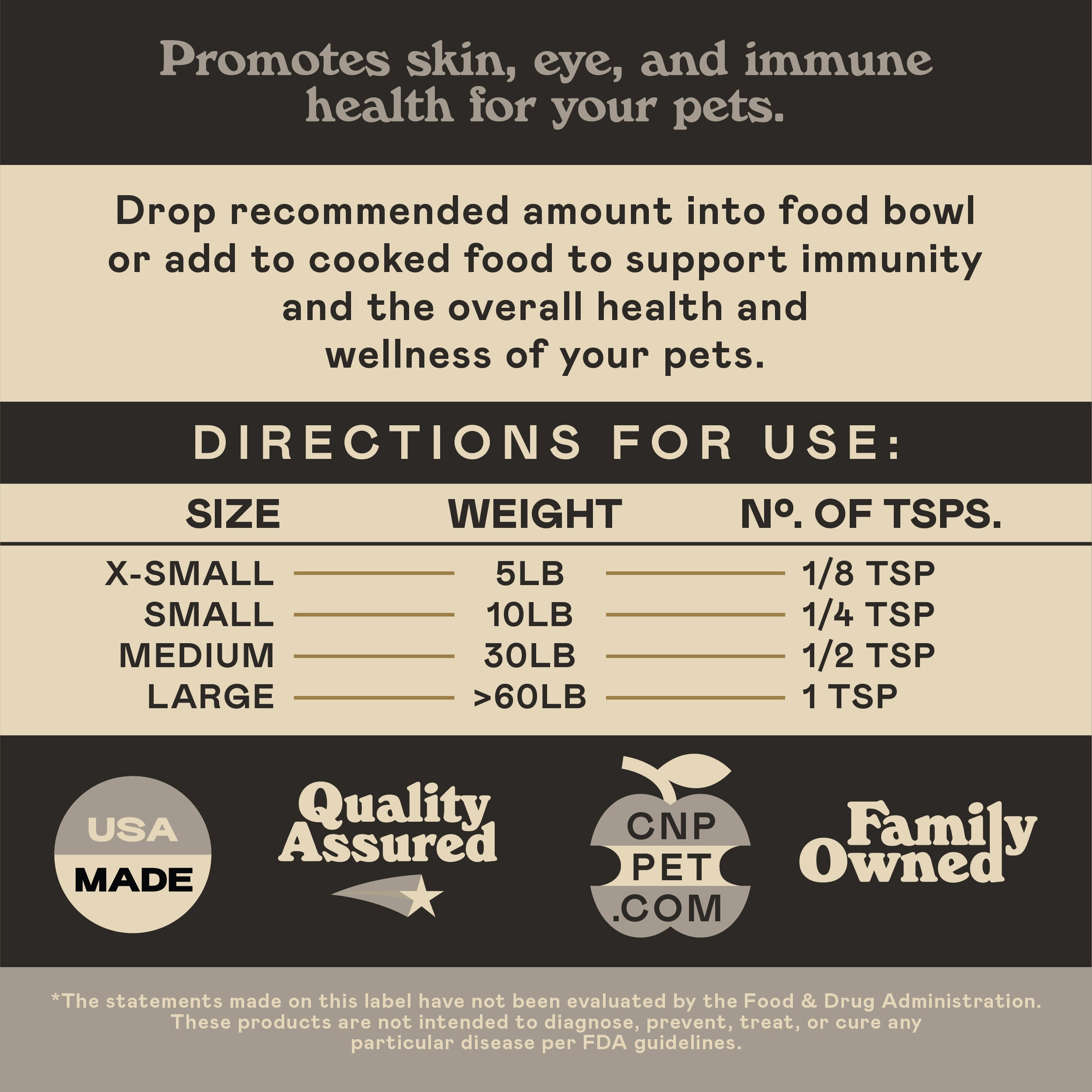 Porciones: 48 cucharadas (1/2 cucharadita) El tamaño de la porción varía según el tamaño de la mascota.