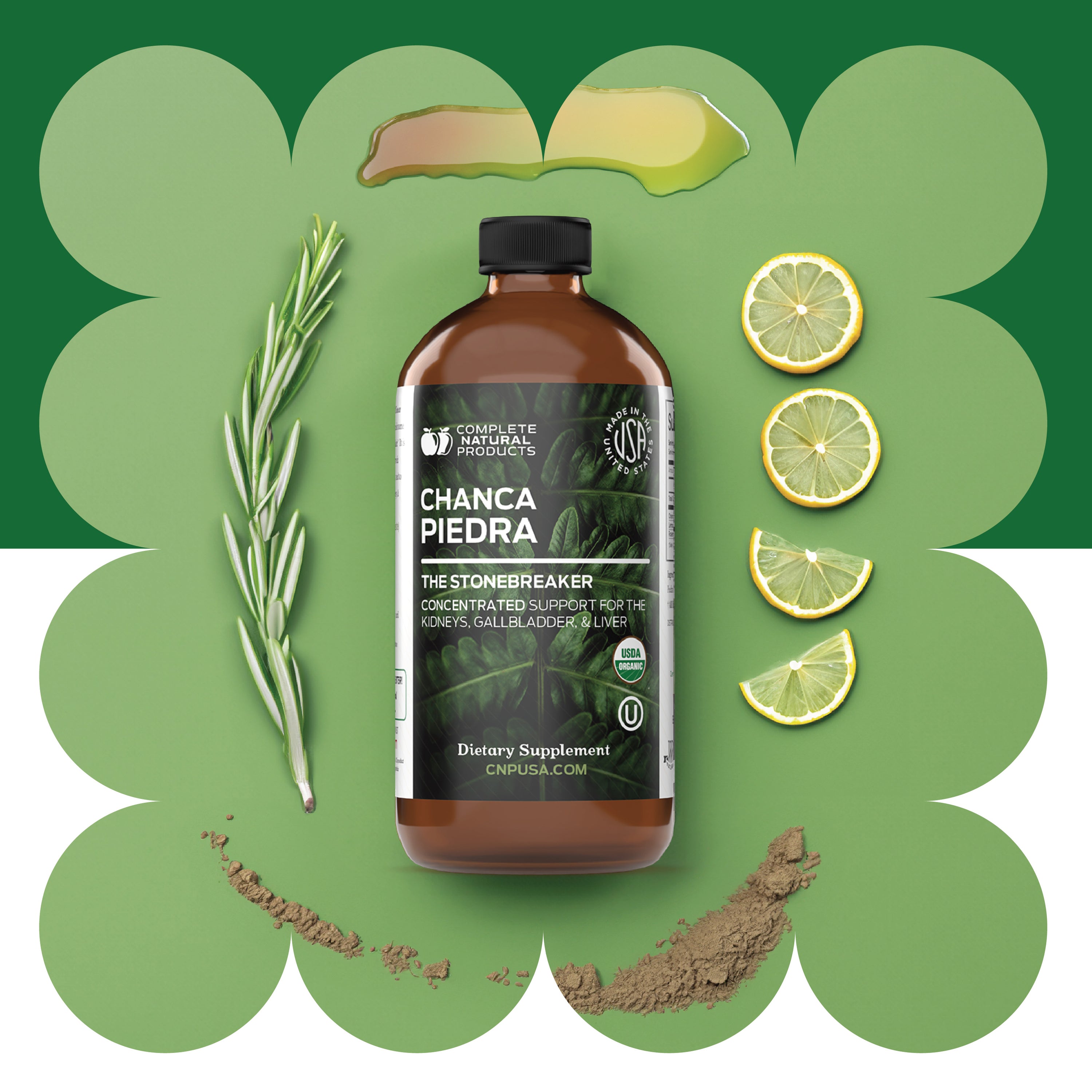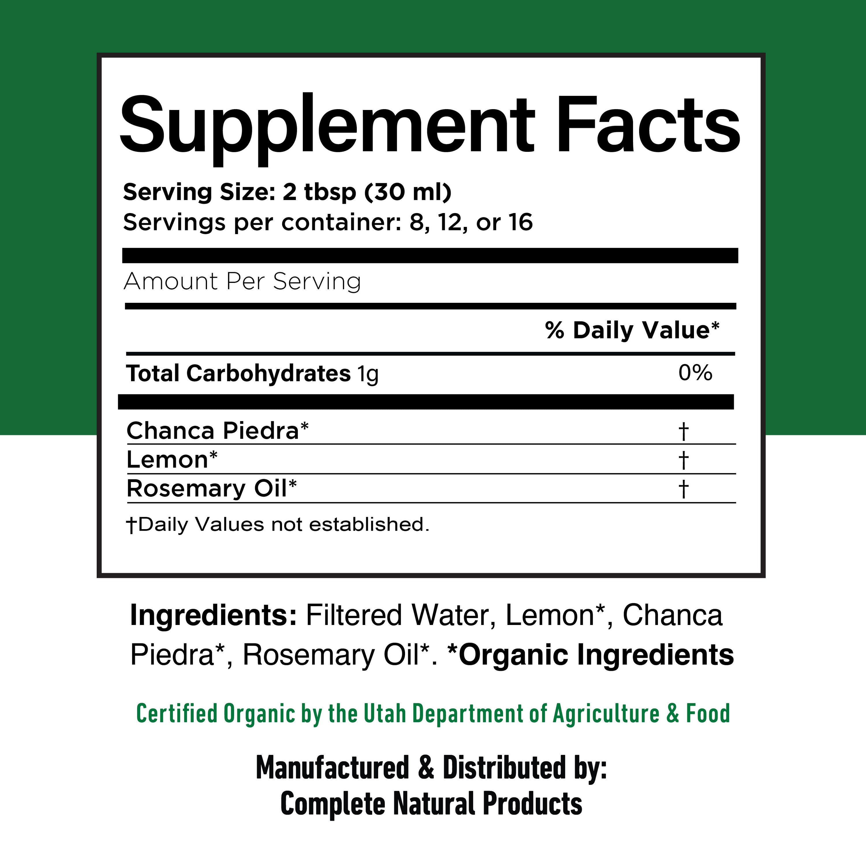 Production Notes: This steam-distilled extract is made without harsh solvents or alcohols, and uses a cold-pressed process to maintain purity. Each ounce contains 150 mg of Chanca Piedra.