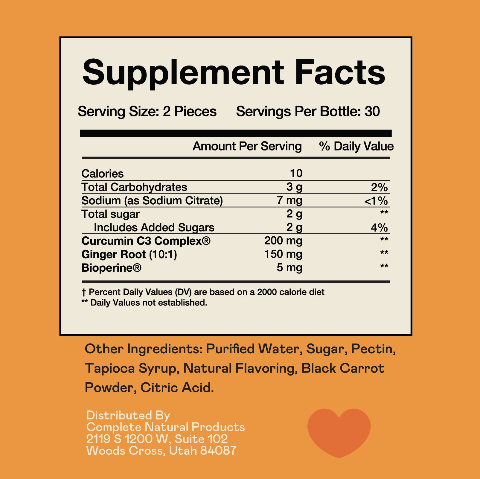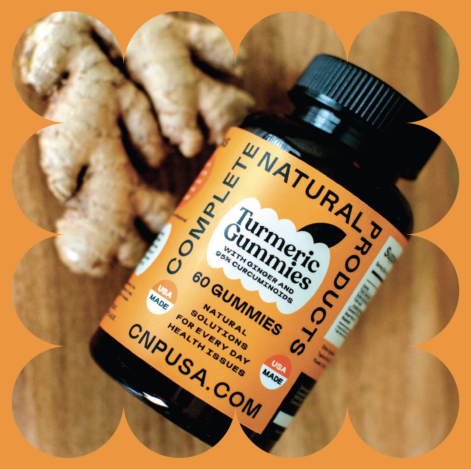 Complete Natural Products Turmeric Curcumin Ginger Gummies. Turmeric provides one of Mother Earth’s best kept secrets, curcuminoids, a group of antioxidants that support perfectly. Our Turmeric Curcumin gummies have Black Pepper Extract and Turmeric Curcumin complex and are a delicious alternative to turmeric pills, capsules, or powder. The chewable gummies are convenient and have a delicious ginger flavor.